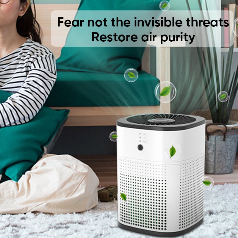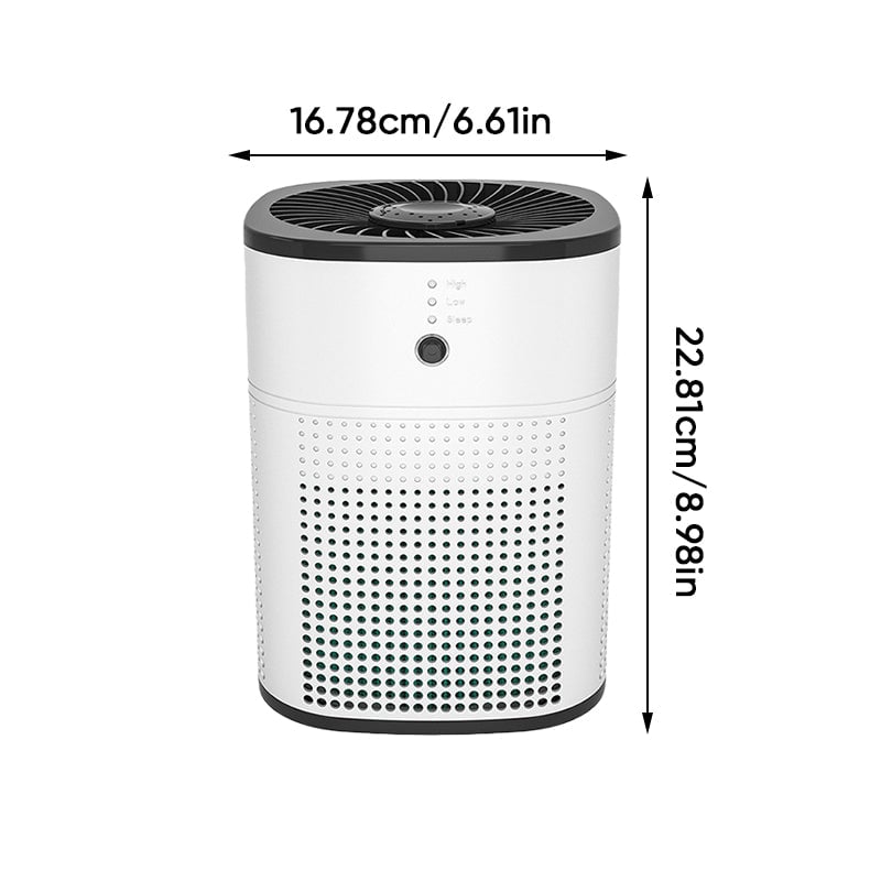 This compact air purifier for the bedroom features a 360° air intake system, ensuring that every corner of the room is effectively purified from all directions.